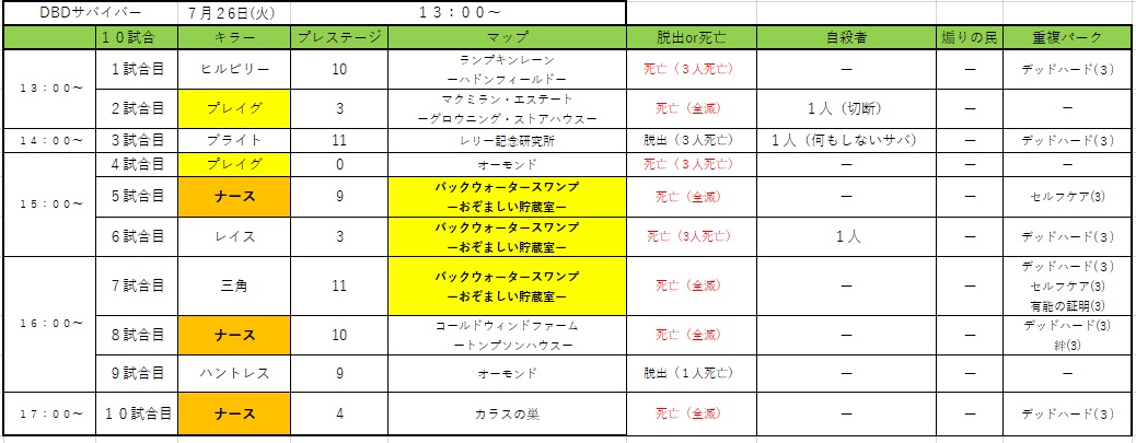 【ゲーム】DBD記録7日目(アプデ後)サバイバー